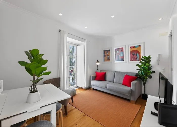 The 2-room Alfama Charm House Apartment Lisbon is nestled in the Marsdorf district, nearly 15 minutes' walk from the large Praca da Figueira Square.